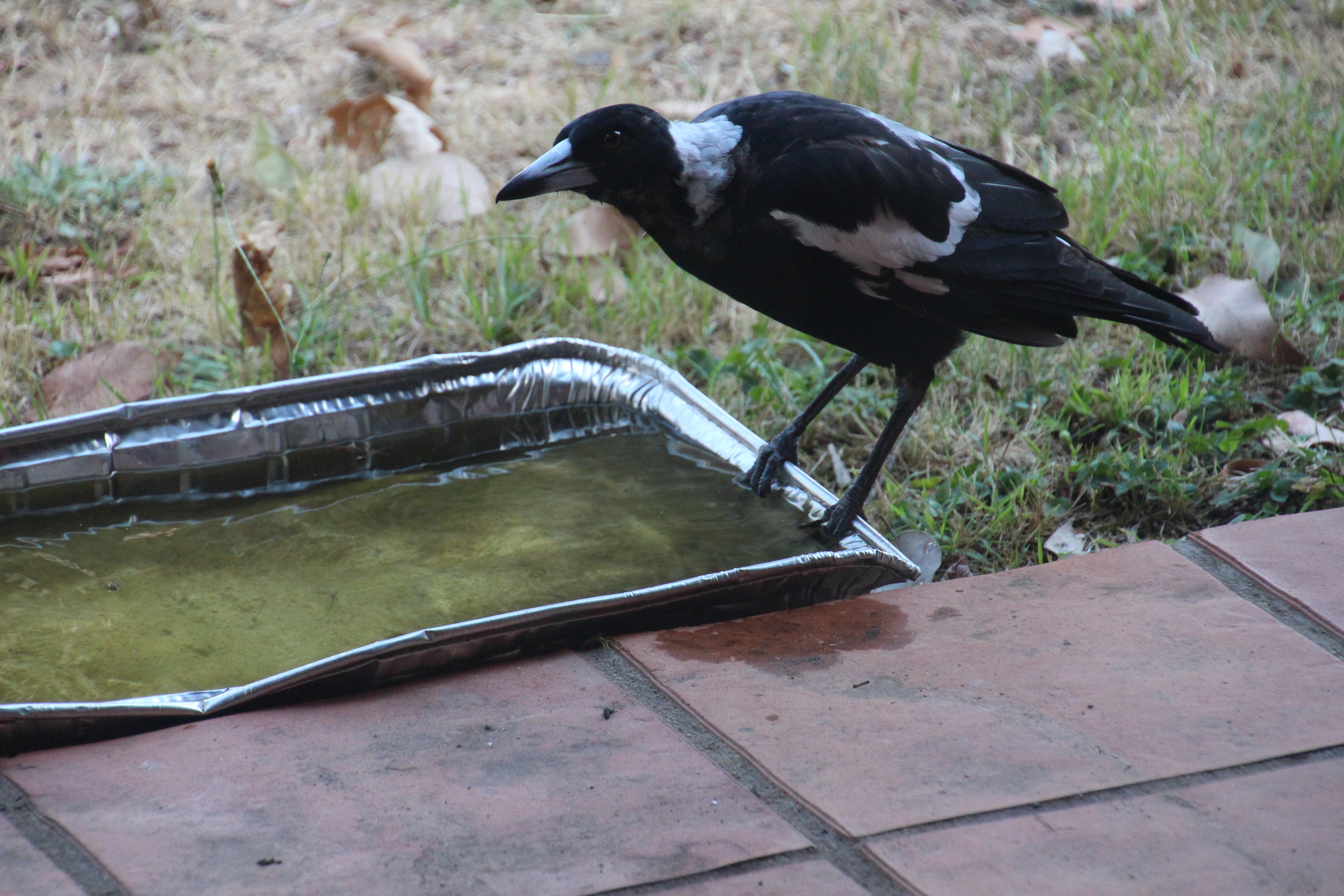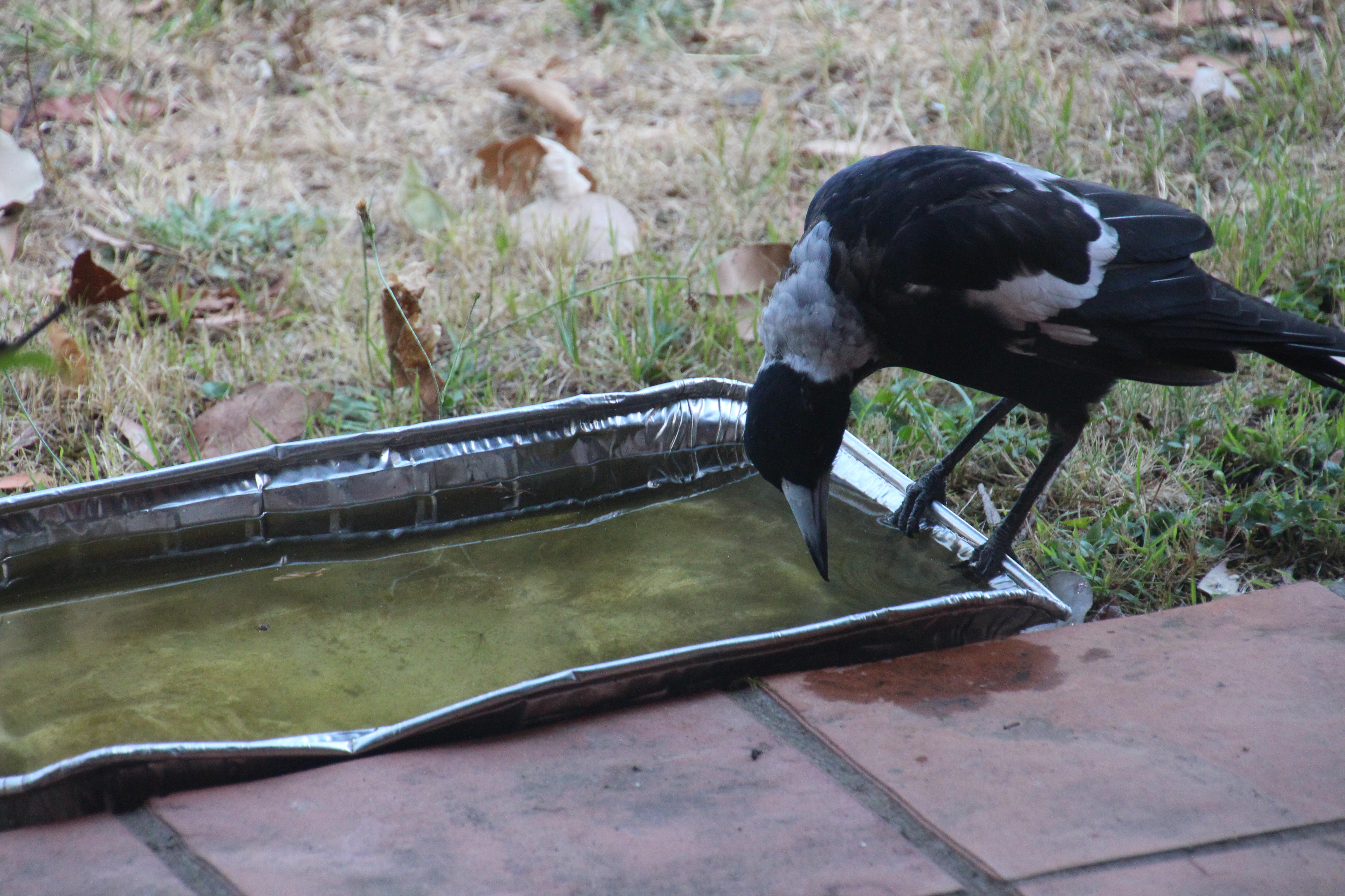 The extreme heatwave is hard on native birds, especially the magpies. The young ones take a while to work out that the silver tray is full of water just for them. We have also been watching a family of Willy Wagtails in their tiny, mud-built nest in the oak tree. Every time, I walked past the tree I would get dive-bombed by mummy bird to warn me off going near her three little babies. Today, we noticed that there is only one left in the nest.