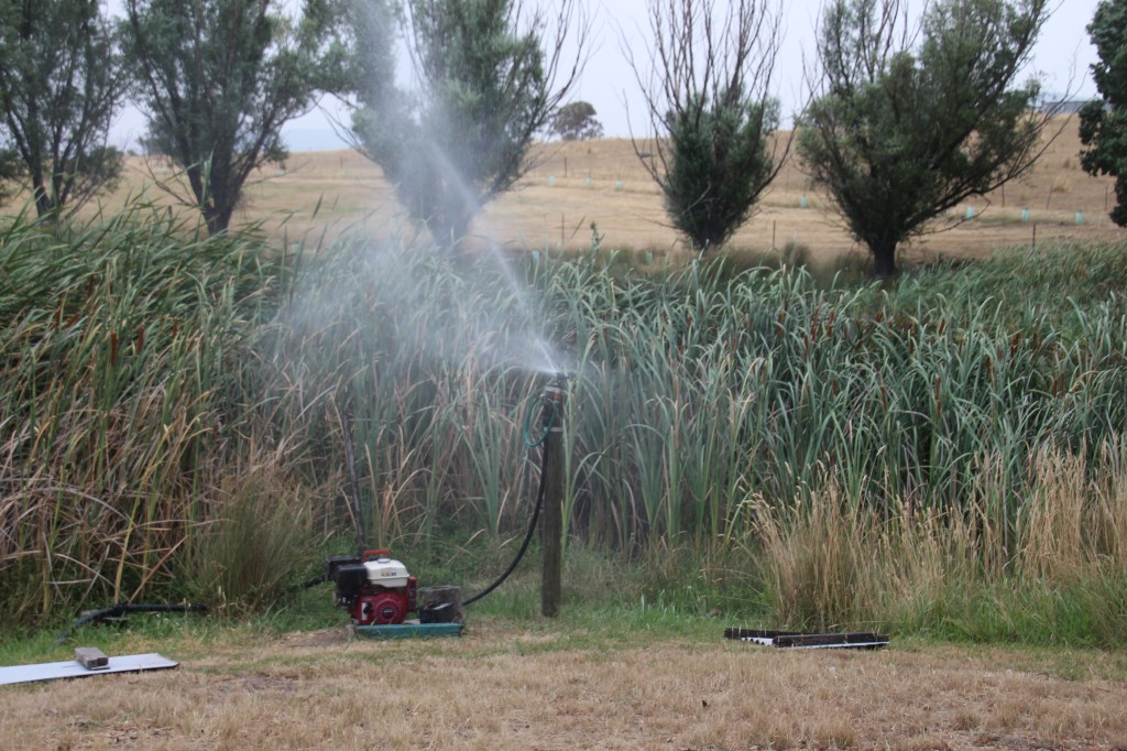We continue to ensure on the hot days that there are plenty of water bowls around the house for all the different birds that visit us ranging from the tiny finches through to the larger magpies. Bolly(my husband) has been working extremely hard clearing any fallen leaves and branches from around our property. The hot windy days are nuisance because you have to clear up all over again! We have complied a “what to do in a fire” situation book of instructions and photos for us to refer to and for any house sitters or visitors. We have a fire-fighting pump near our dam and sprinklers in our lawn if needed. While we don’t feel in any particular danger being in cleared farming land there is still the risk of grassfires and lightening strikes hitting paddock trees.